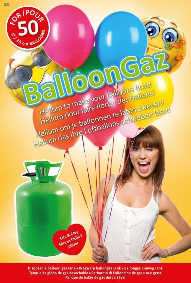 OmschrijvingBallonnen laten zweven door zelf uw ballonnen te vullen met helium gas. Met deze helium tank kunt u zelf heel gemakkelijk tot maximaal 50 stuks standaard latex ballonnen (ca 23cm) opblazen met helium. De helium in de ballon zorgt ervoor dat de ballon gaat zweven, u kunt er dus voor kiezen de ballonnen los gevuld met helium tegen het plafond aan te laten of om hier een ballontros van te maken door deze vast te knopen aan een touwtje en een ballongewicht. De gasfles is afsluitbaar en daardoor op meerdere momenten te gebruiken. De helium blijft tot minimaal een half jaar goed in de gasfles. Na gebruik kunt u de heliumtank gewoon weggooien, u betaald geen statiegeld en de gasfles hoeft niet terug.Tip!Pomp de helium ballonnen zo kort mogelijk voor gebruik op, helium ballonnen hebben namelijk een beperkte zweeftijd. De exacte zweeftijd hangt af van hoe groot u de ballon pompt en de kwaliteit van de ballon.Kenmerken Gemakkelijk en veilig zelf uw ballonnen vullen met helium. 100% veilige wegwerp helium tank Na gebruik gemakkelijk af te sluiten voor een volgend feest Vult tot 50 ballonnen met een formaat van 9 inch/23cm Met handige gebruiksaanwijzing Geen statiegeld, de gasfles hoeft niet retour