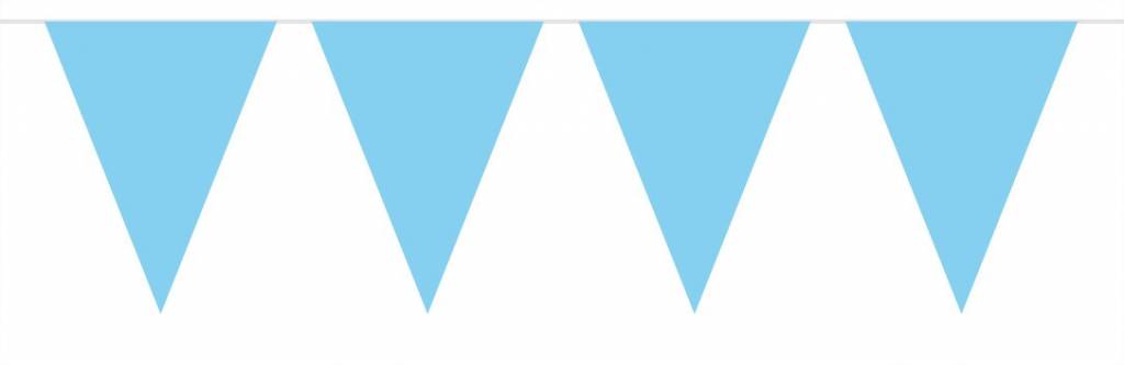 Vlaggenlijn die effen gekleurd is in het baby blauw. Deze vlaggenlijn is 10 meter lang en de vlaggen hangen 30cm naar beneden.